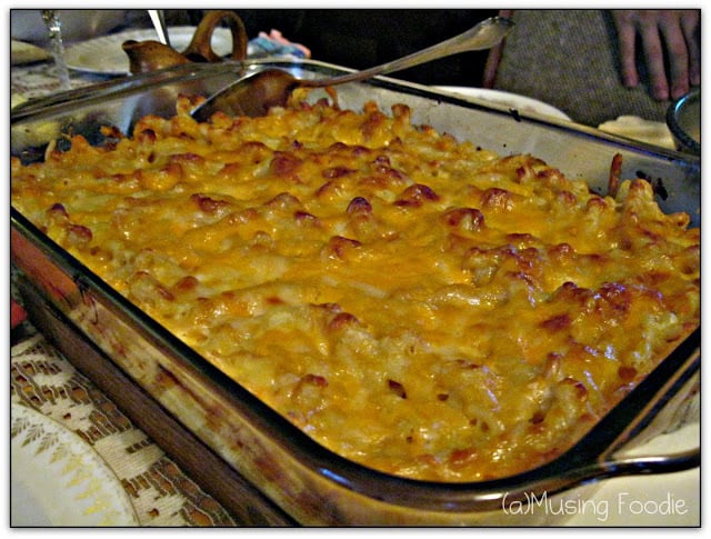 …marry with newer favorites, like my sister’s homemade baked mac ‘n cheese, with crispy buttery edges.