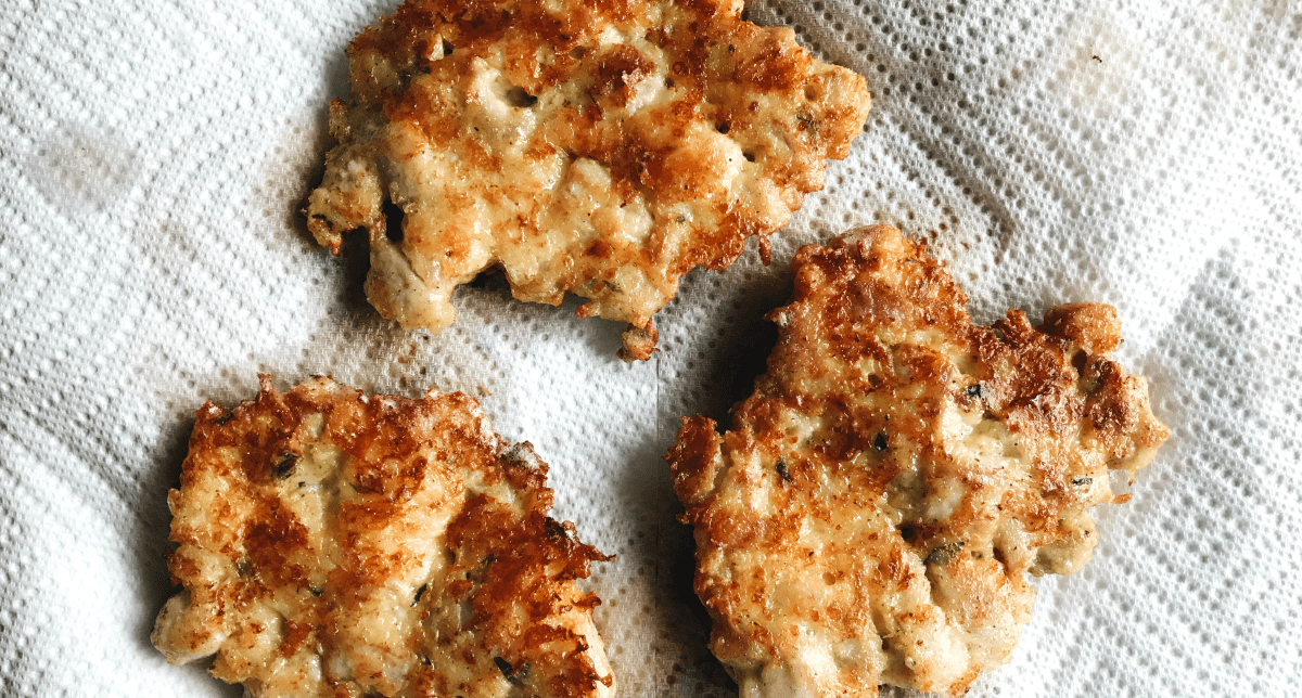 Find the full printable recipe here: Cheesy Chicken Fritters from Natasha’s Kitchen.