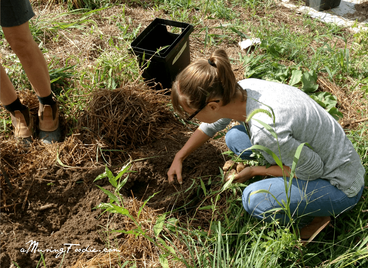 Two weekends ago it was time to start digging up the potatoes in the big garden on the homestead. My mom’s a seed-saver, which means she carefully keeps seeds from the produce she’s grown (mostly heirloom and all organic) to use for planting the next season’s crops.
